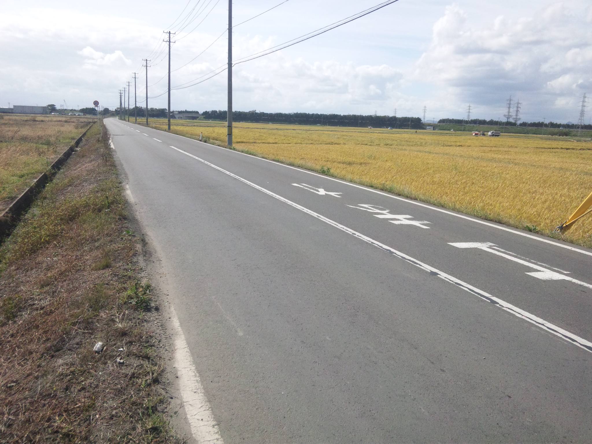 さて、貼付の写真は道路をはさんで右が刈り取りを待つ黄金色の田んぼ、左が今年の暑さと雨不足で雑草さえ枯れた茶色の田んぼです。遠景の空と地を分けているのが津波の浸水、非浸水をわけた仙台東部道路。ここは東部道路より海側の地域ですが、田の排水路の回復の差が明暗を分けてしまいました。米を作れた農家の方は二年ぶりの収穫に声も弾みます。「作柄はまずまず」「セシウム検査もやった。問題なし」「あとは(等級)検査を待つだけだが家族で”ウマイ”と言えたのが一番」~昨年作れなかったということは農家にとって一年間失業したということ。今年の収穫は復興への大きな一歩です。