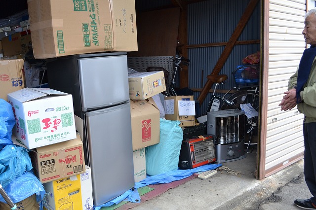 ボランティアセンターだけでは収納しきれず、近くの倉庫に押しこみました。