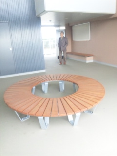 玄関などは無くオーブン形式で、エレベーターホールにはベンチがあり、お年寄りが待つには楽そうです。各階の展望ホールにも円形ベンチがあり、越されてきた方々が和気あいあいと日向ぼっこなどできたらいいな。