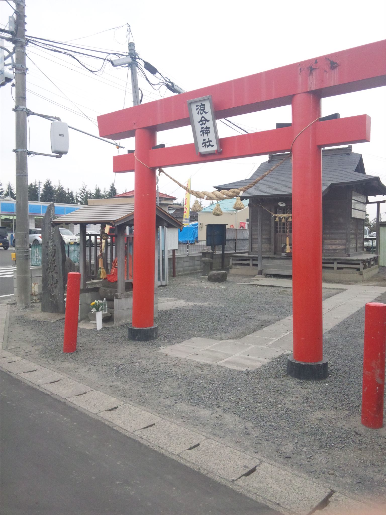 この神社は津波に襲われた海岸線から5.5kmほどの若林区の霞目(かすみのめ)という住宅地に実在します。この地には869年の貞観大津波はじめいくつかの津波の記憶が口伝されており、慶長16年(1611年)の大津波のときに浪が二つに分かれて奇跡的に助かった地に、近くにあった稲荷神社を移して「浪分」神社としてまつったとの記録があります。国道4号線バイパスからほど近いところなので、深沼など被災地に足を運ばれた方も「えっ、こんなところまで津波が来た!?」と驚かれることでしょう。機会があったら是非一度訪ねてみて下さい。(すぐ近くには仙台市出身の江戸時代の大横綱・谷風の墓所もあります)