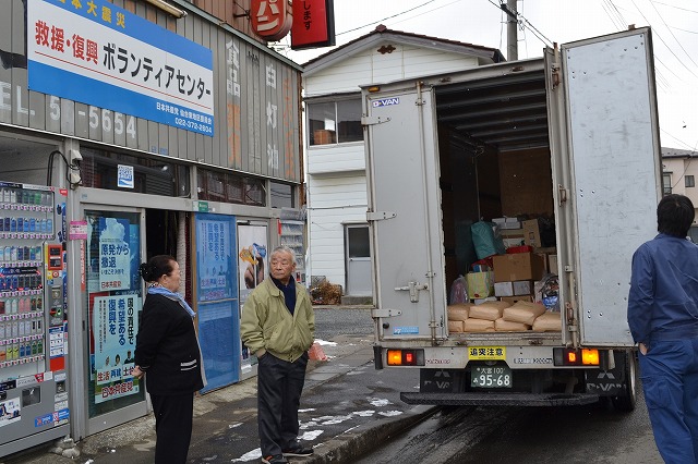 17日、ボランティアセンターに支援物資を積んだトラックが埼玉から到着しました。コンテナの中にはおコメ・衣料品に加え、各種ストーブや毛布類など冬物用品など満載。中には冷蔵庫や餅つき機などもあります。